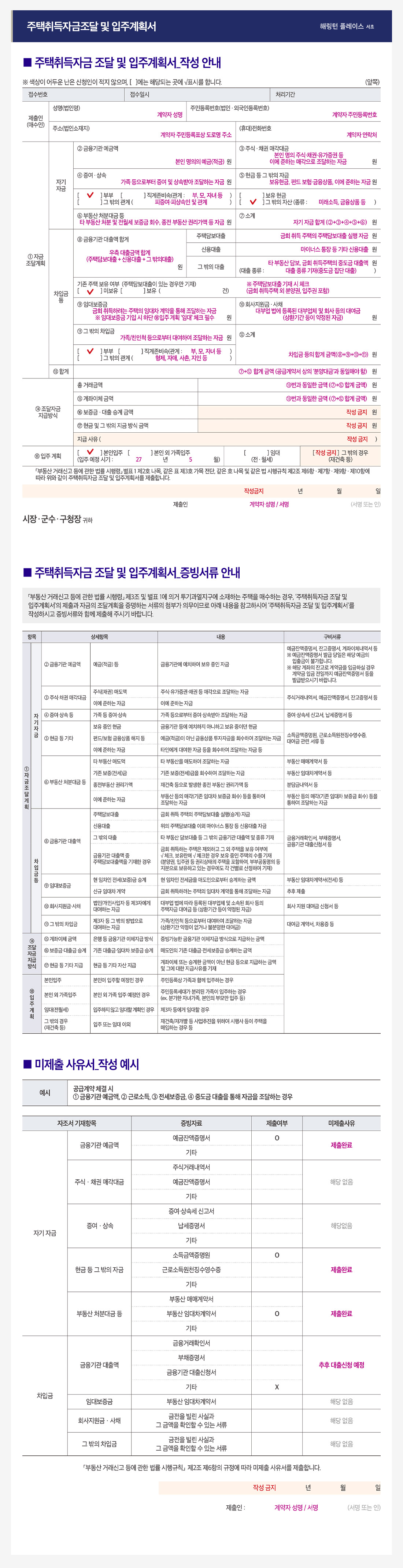 주택취득자금조달 및 입주계획서